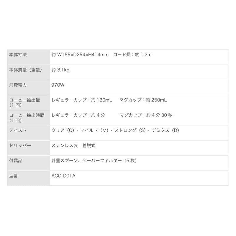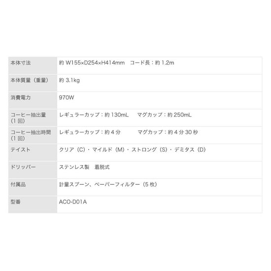 • 職人のハンドドリップのように、香り高く雑味の少ない一杯を再現するコーヒーメーカー