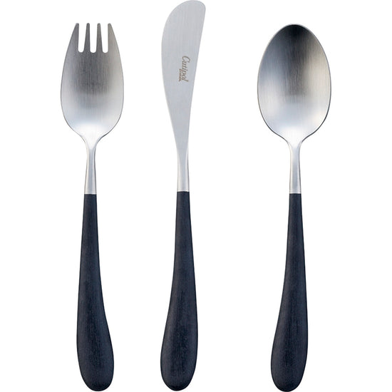 ナイフはゆるやかな刃で、オムレツやハンバーグをカットしたり、ジャムなどを塗るのにも適しています。