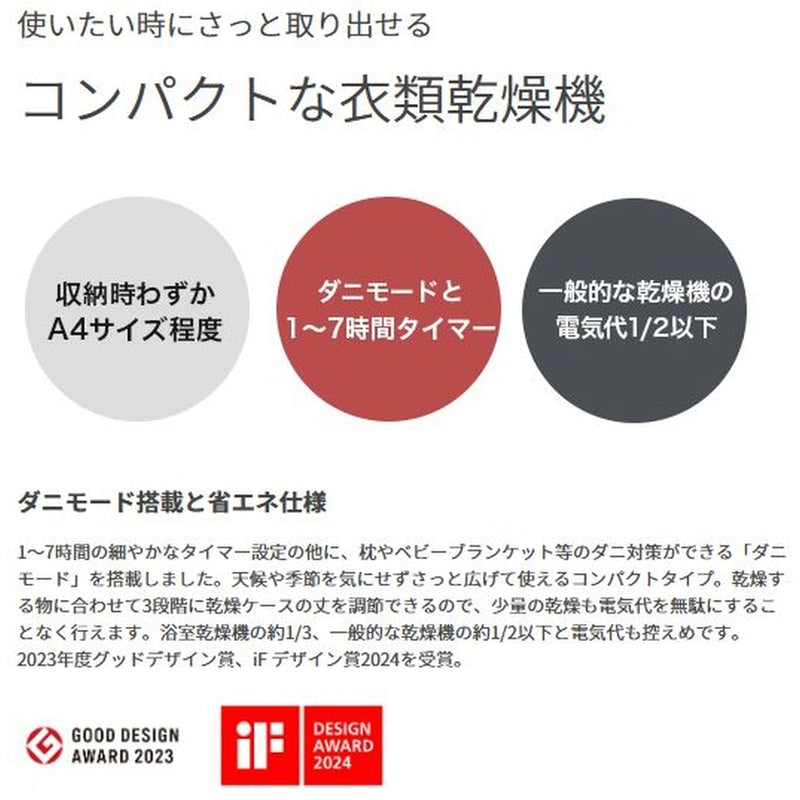 • 小さなサイズでしっかり乾かす、省スペース設計の衣類乾燥機