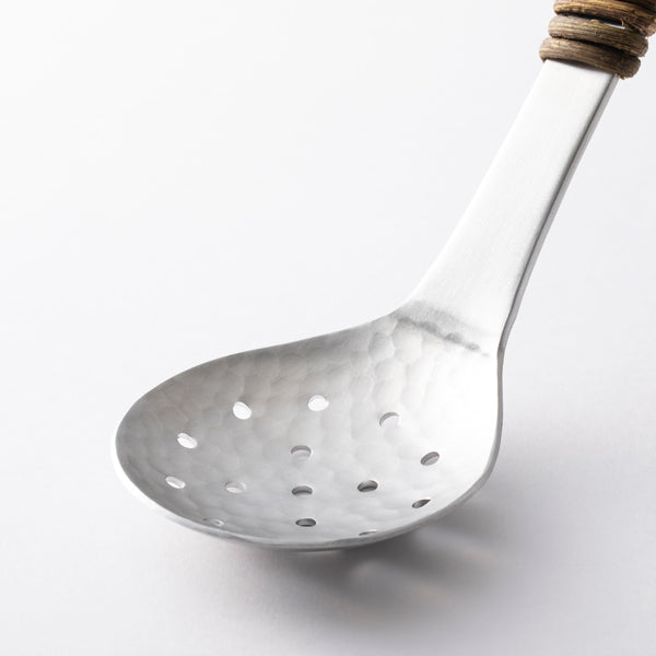 • 持ち手にアケビの蔓を巻き、熱くなりにくく快適な使い心地の穴あきお玉。