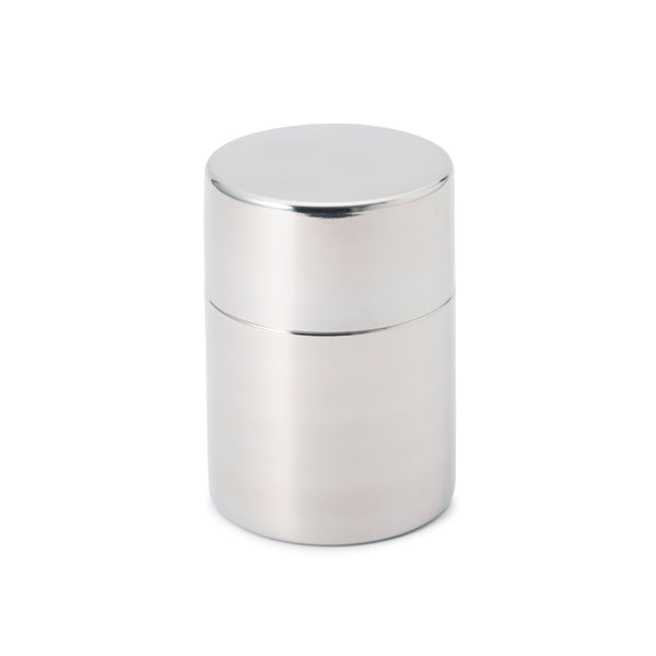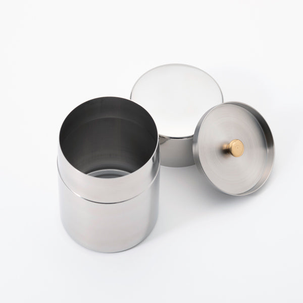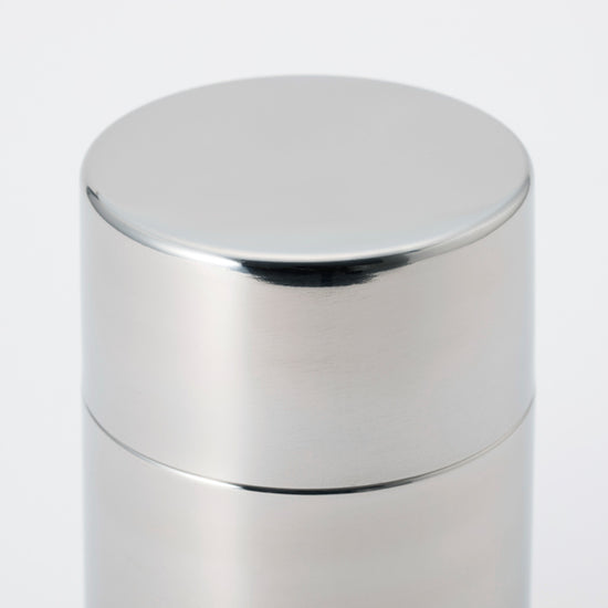 - シンプルなデザインのステンレス製茶筒。茶葉やコーヒー、乾物などの保存にも。