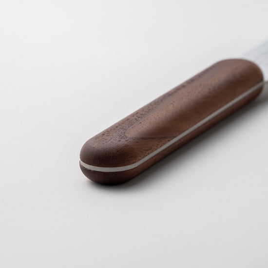 握り手は無垢の木を削り出し、使い慣れた家具のような柔らかなカーブで、握りやすく心地よい手触りを実現しました。
