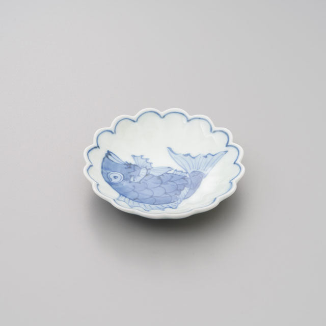 【渓山窯】染付めで鯛菊型3.5寸皿