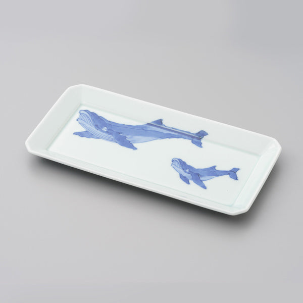 【渓山窯】染付ナガスくじら長角皿(中)