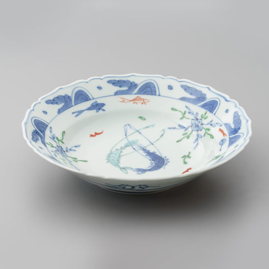【渓山窯】染錦双海老桔梗渕7寸中鉢