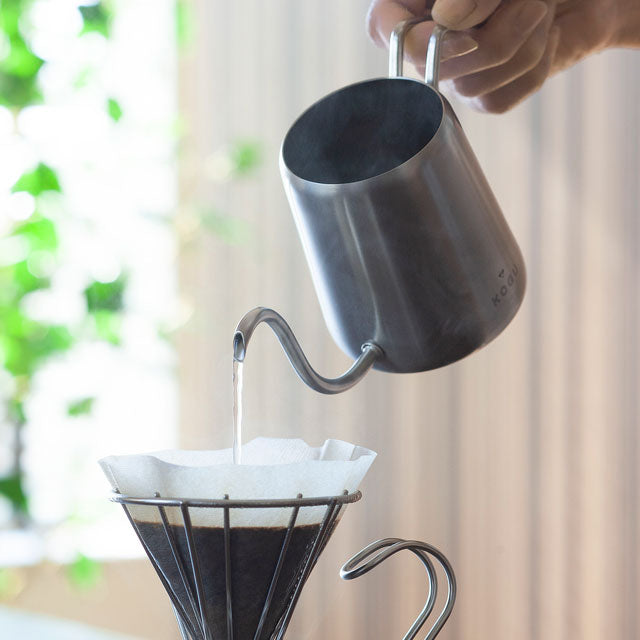 6mm(内径4.5mm)径の細さで、雫のように「ぽたり・ぽたり」と落としたり、糸のようにそっと注ぐことができ、湯量調節が簡単に。