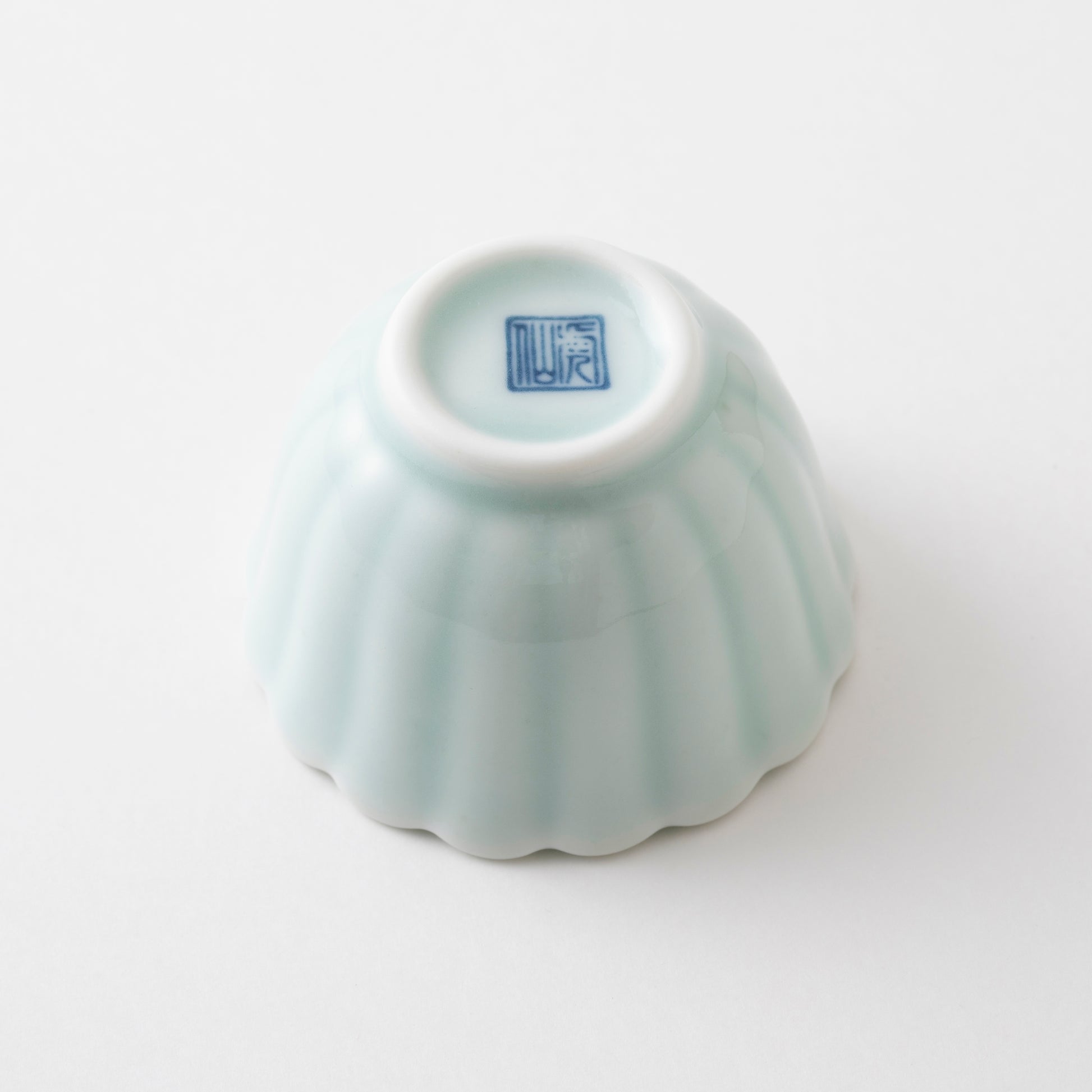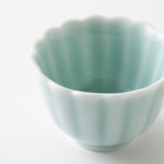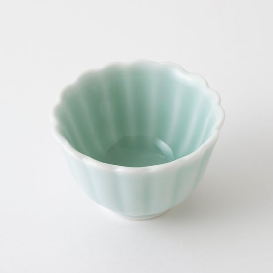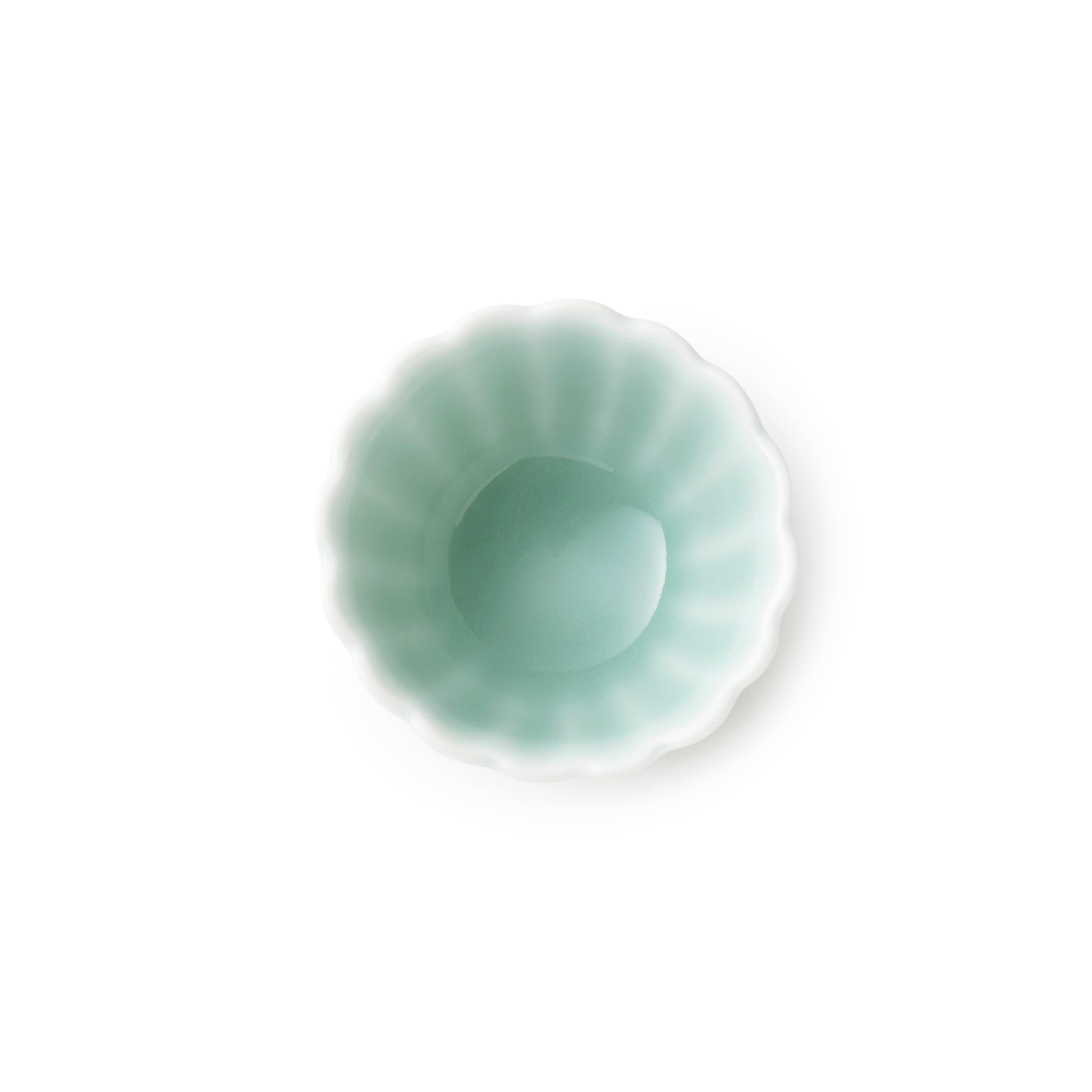 • 青磁釉で覆われた翡翠のように美しい菊型の豆皿です。