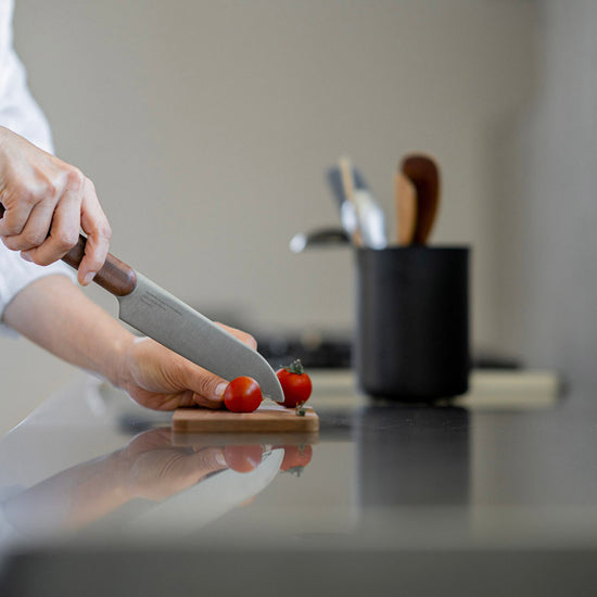 現代の暮らしに必要十分な刃渡り約150mmの手軽なサイズを採用しました。お肉やお野菜を切るときはもちろん、野菜やフルーツの皮剥きなど、ちょっとした調理にも気軽に使えます。