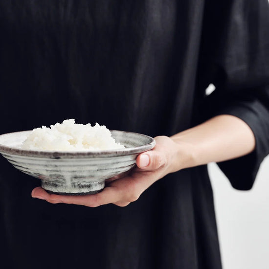 浅めの形状は、ごはんをよそった時に余白を残しながらもこんもりと盛ることができる平茶碗という形です。