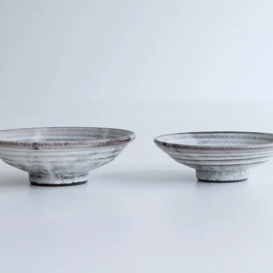 - "荒目の土をろくろで引いて成形しています。轆轤目、削り跡、釉むらなど により個体差が大きいため極めて一点ものに近い器です。"