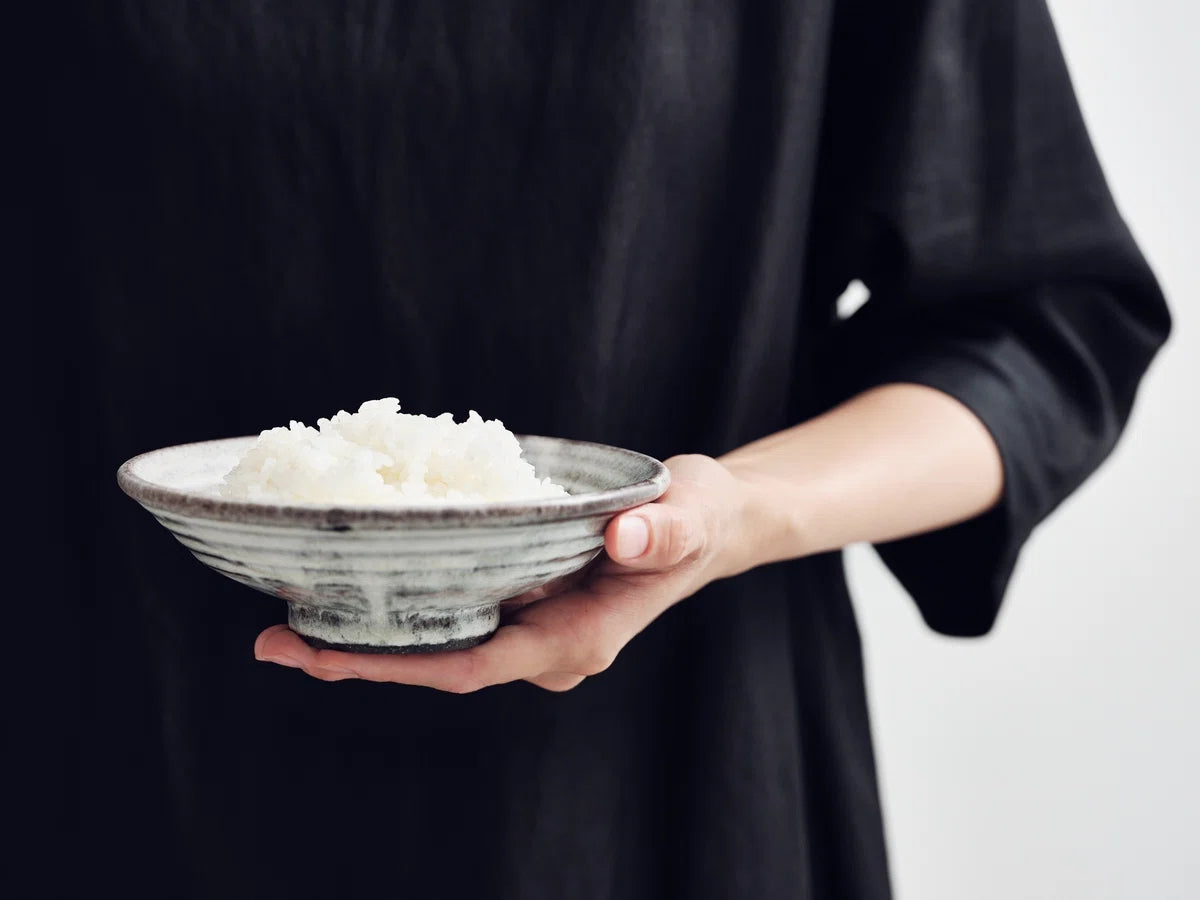 浅めの形状は、ごはんをよそった時に余白を残しながらもこんもりと盛ることができる平茶碗という形です。