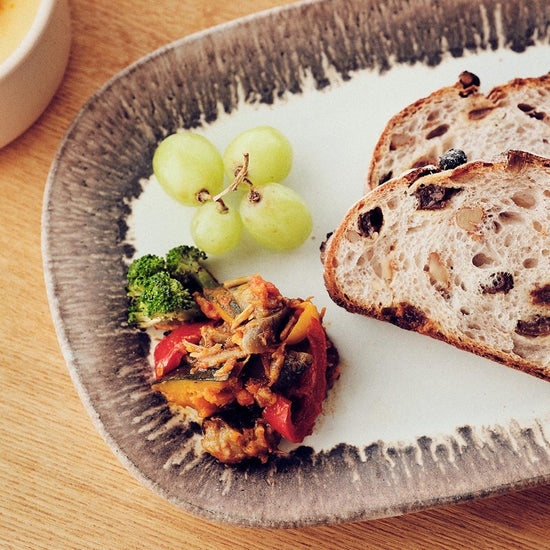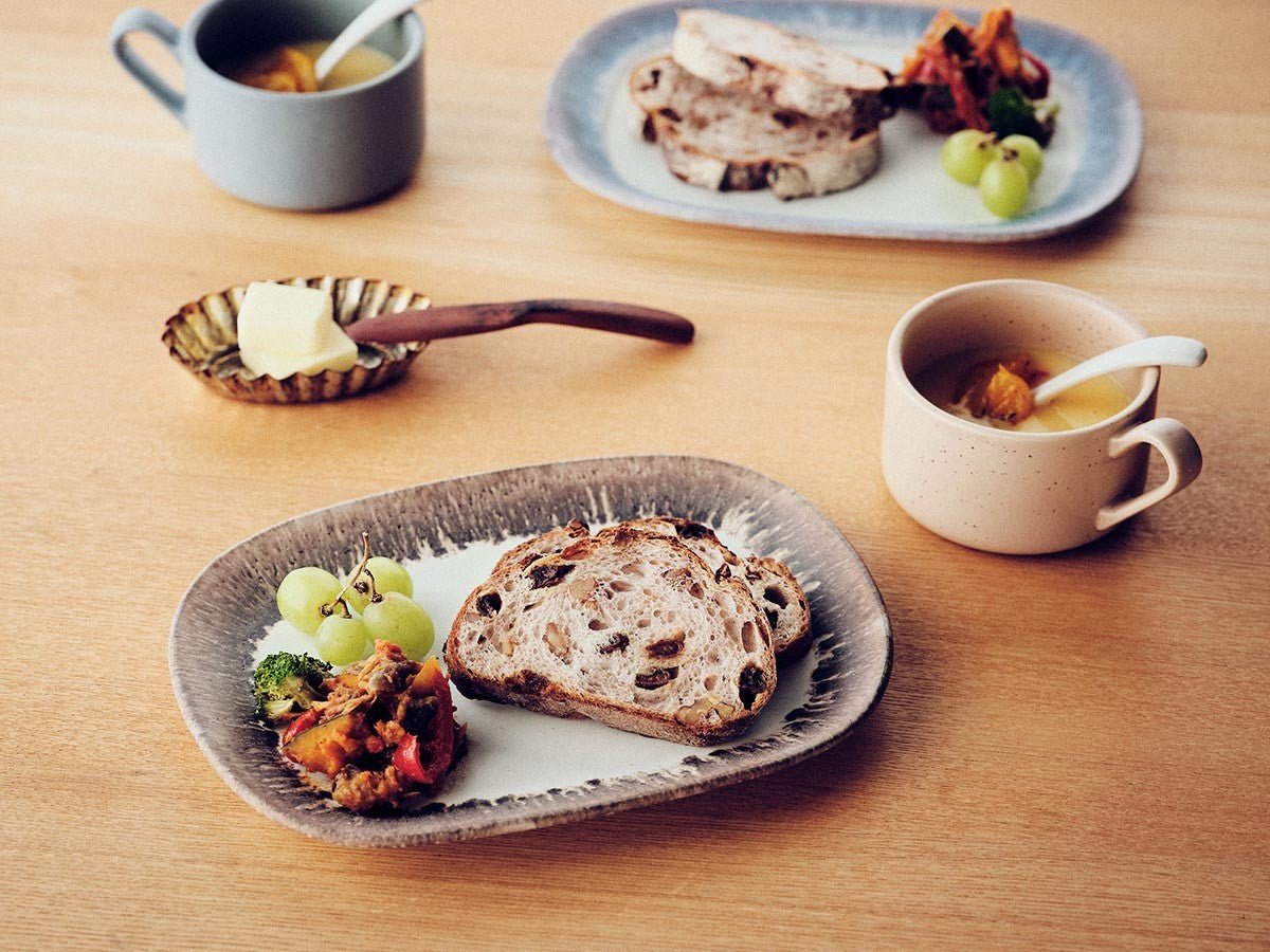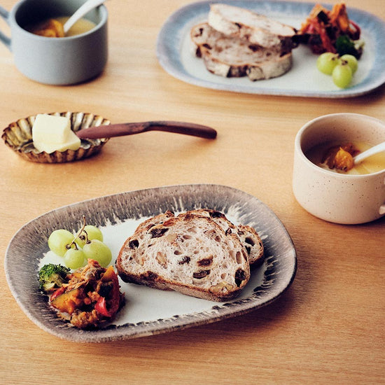 ゆったりと過ごしたい週末の朝食に最適な、パンを乗せてもゆとりがあるサイズのお皿。ワンプレートでサラダやフルーツを添えた朝食ができあがります。朝食だけでなく、副菜やスイーツの盛り合わせにもおすすめです。