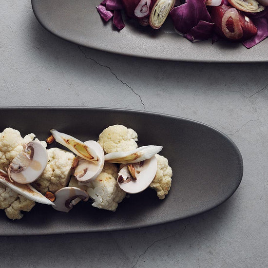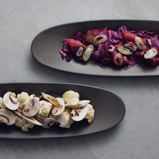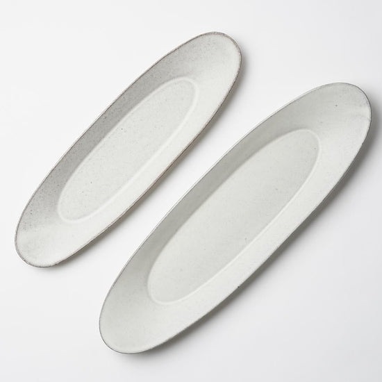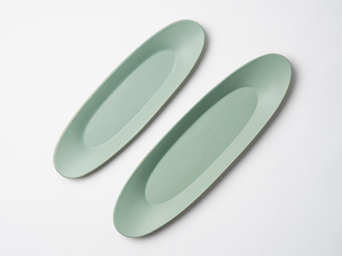スリムな楕円形のお皿。丸いお皿が大半を占めがちな食卓の中に取り入れることで、テーブル上にリズムが生まれて華やかな印象になります。一品料理や焼き魚の他、お刺身や副菜の盛り合わせ用のお皿にも最適です。使い方次第で和洋問わず様々なジャンルの料理を盛り付けることができます。スリムな形状のため、お皿とお皿のスペースに差し込むことができ、多くのお皿が並ぶテーブルでも重宝します。