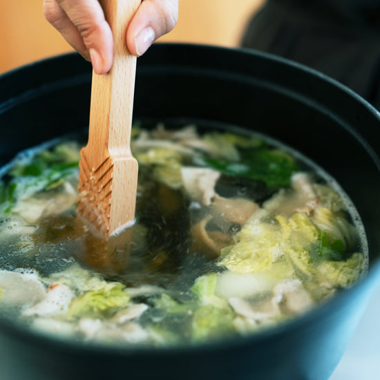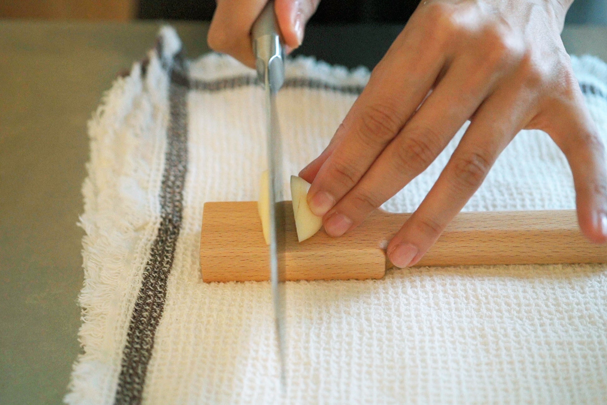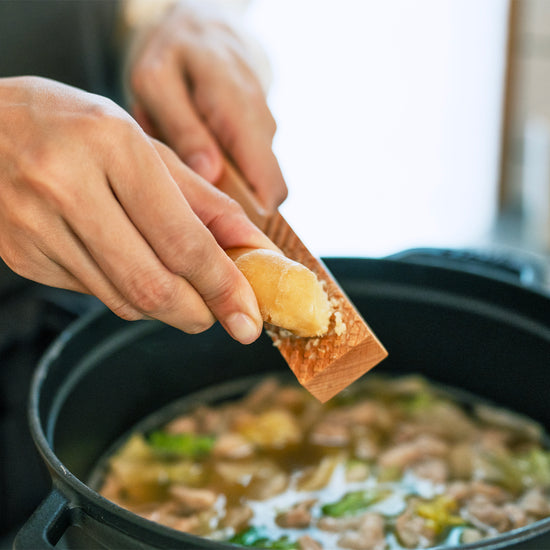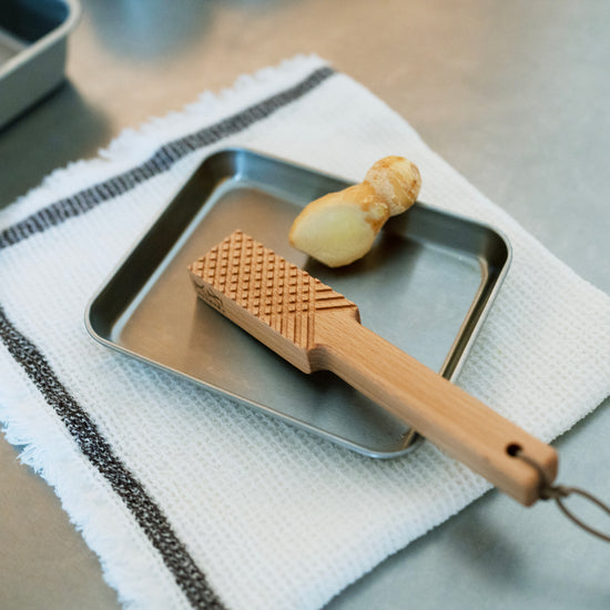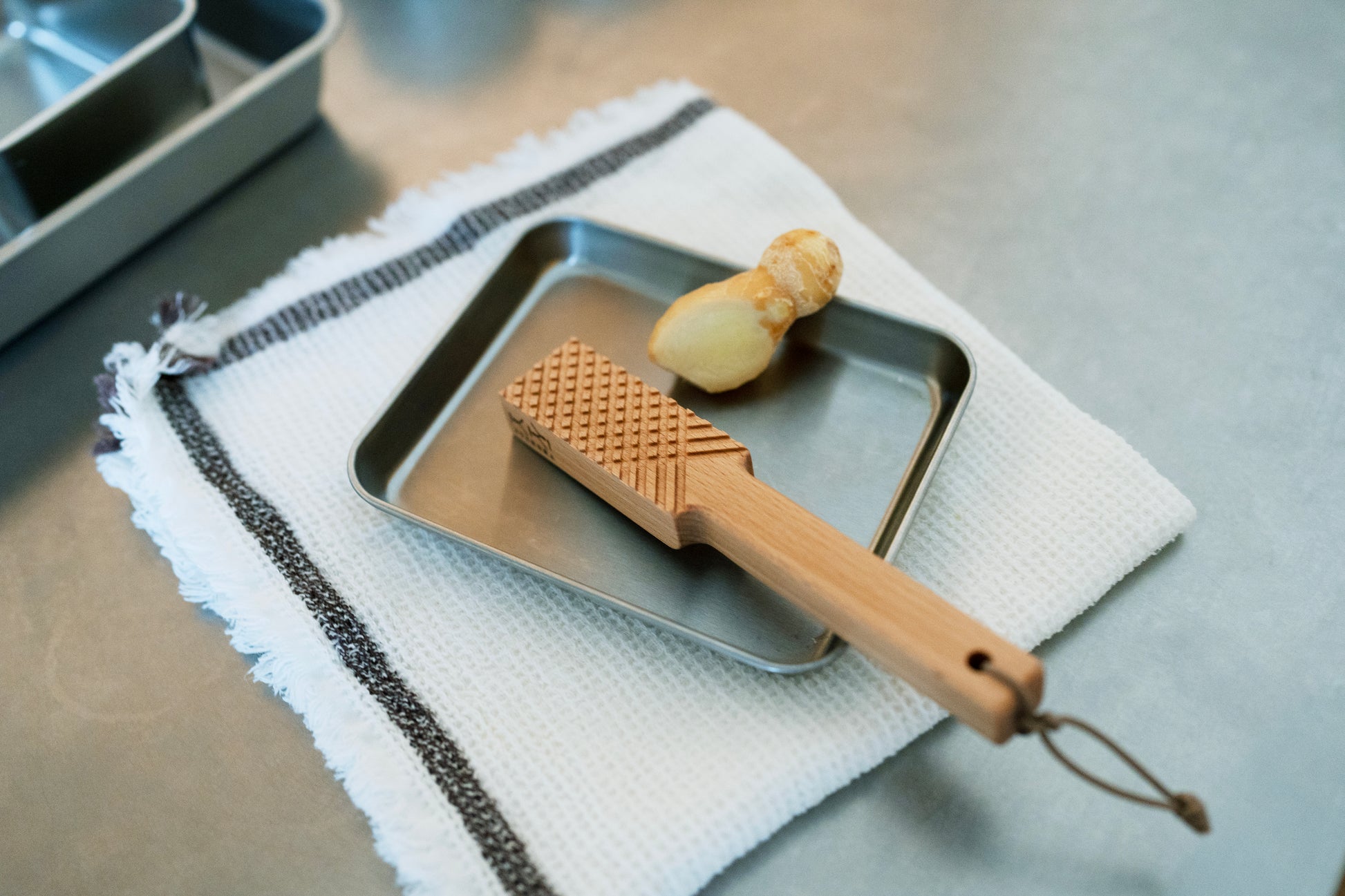 • 固く粘りの強いブナ材の特性を活かした木製おろし棒。握りやすく、軽い力ですりおろすことができます。