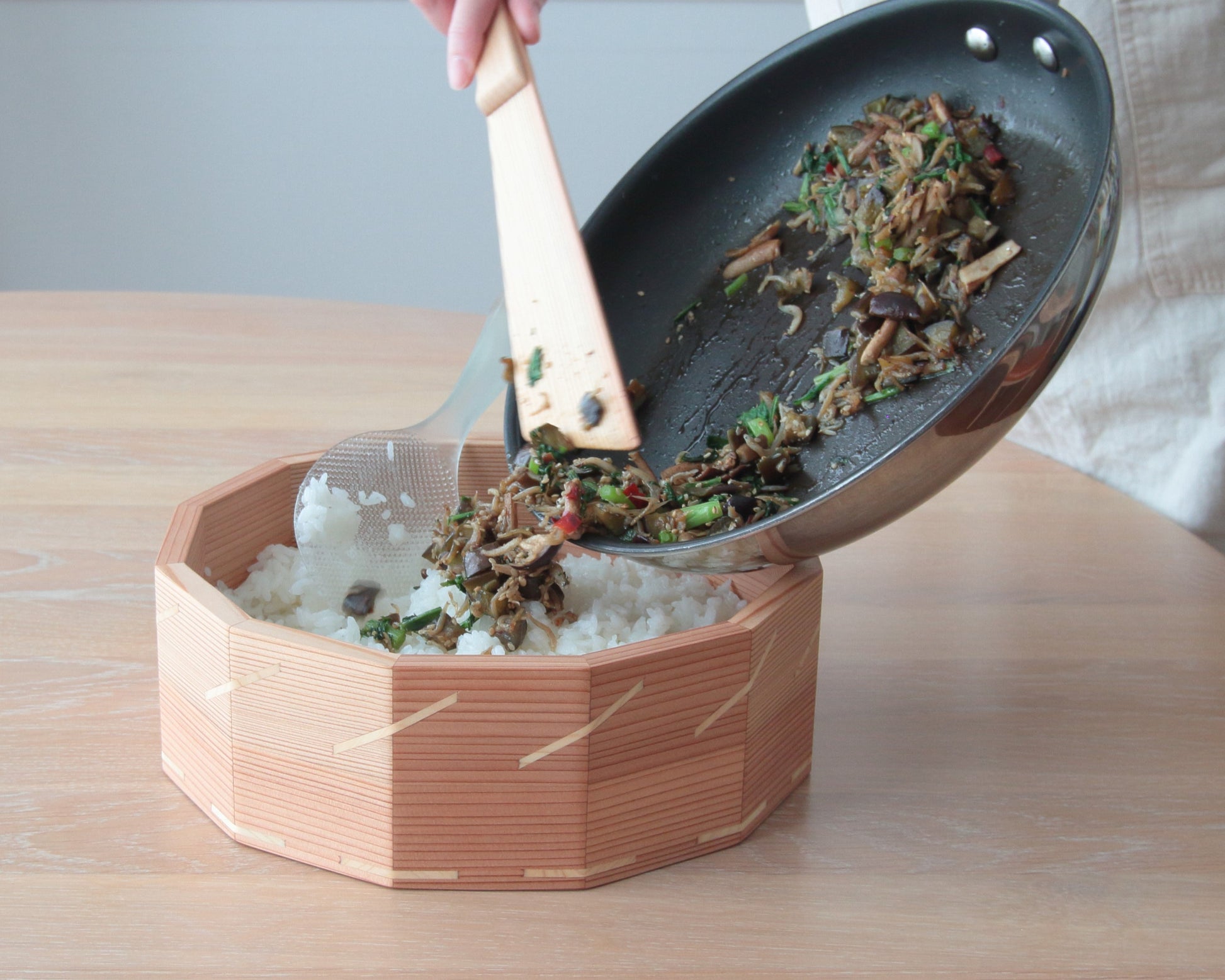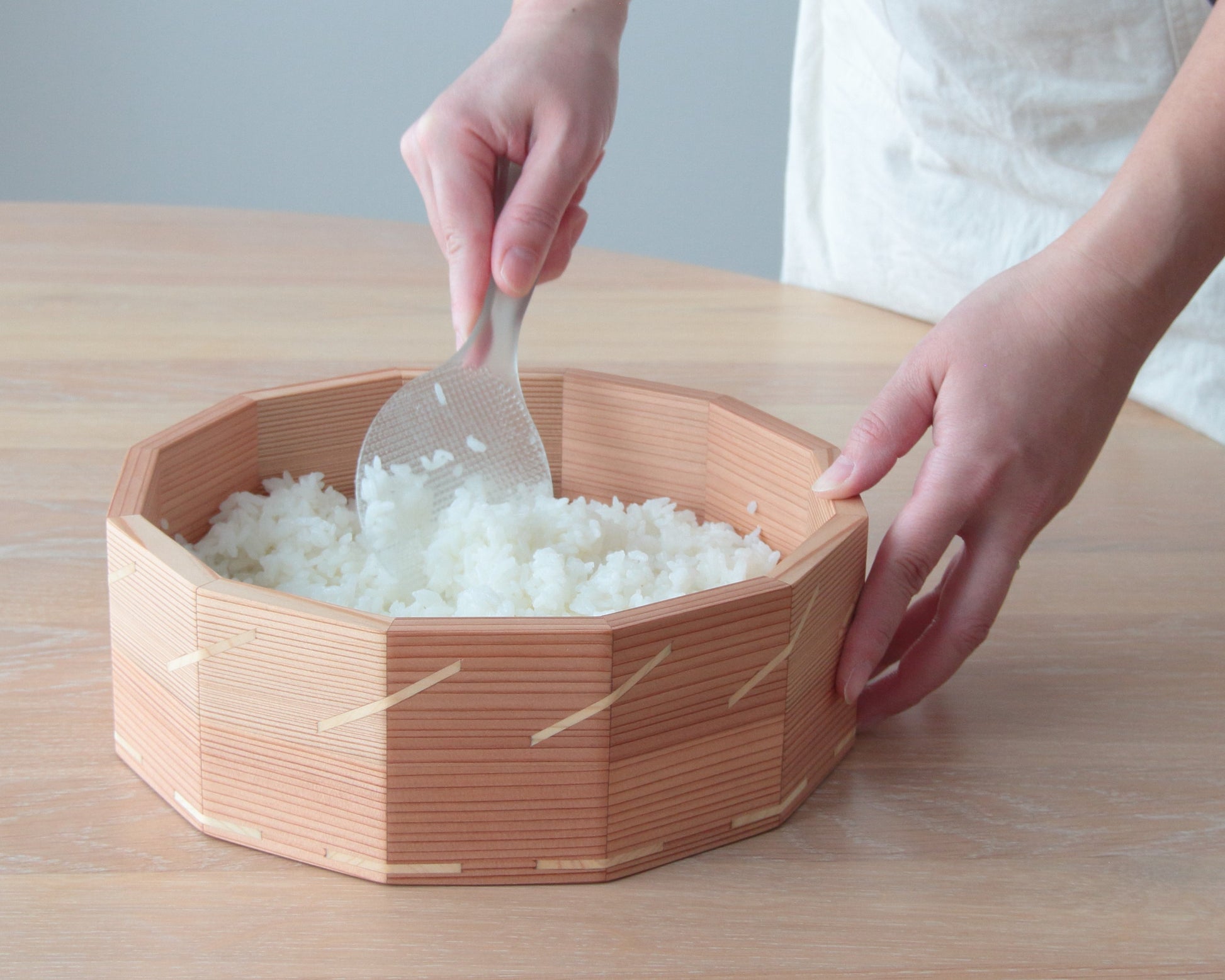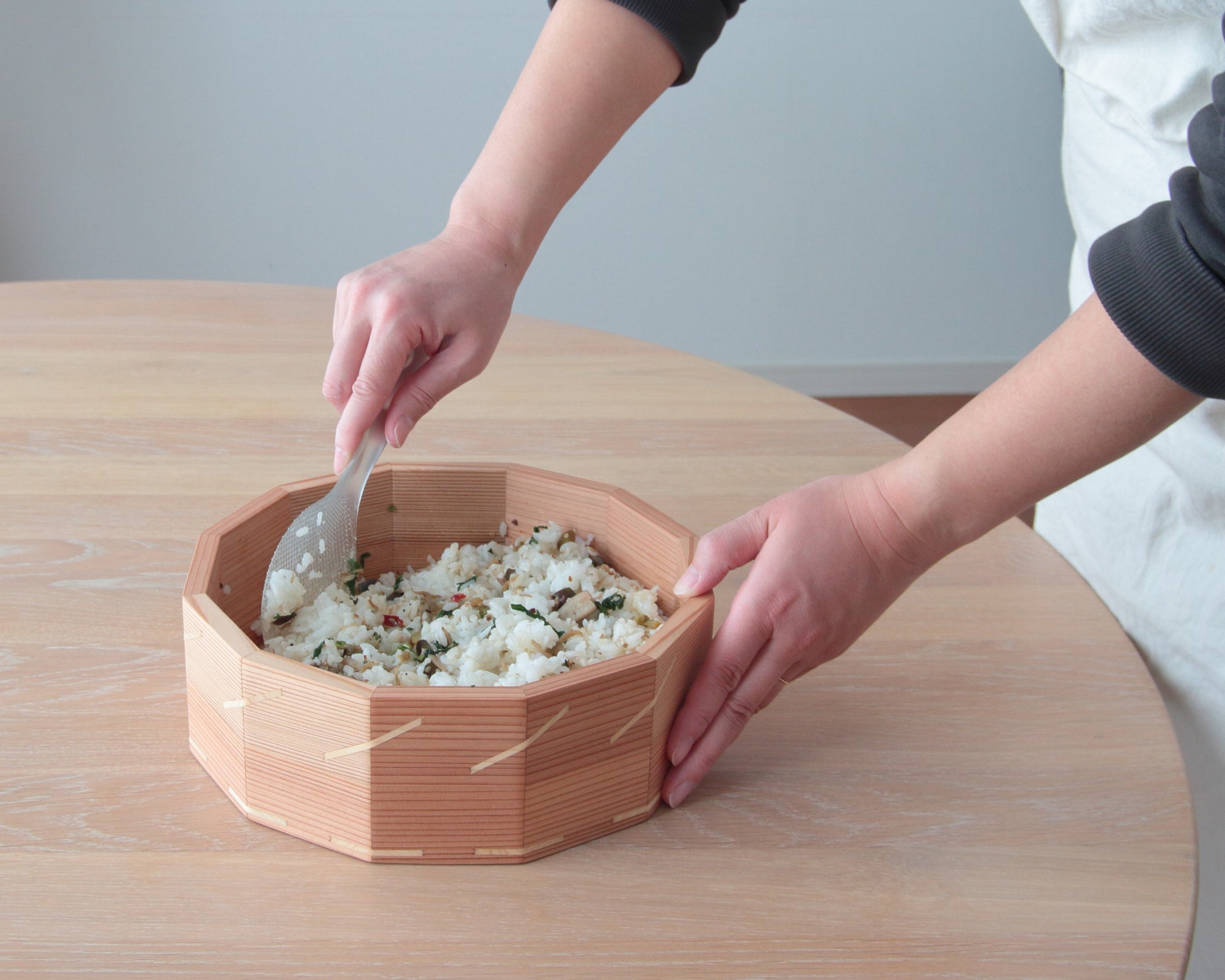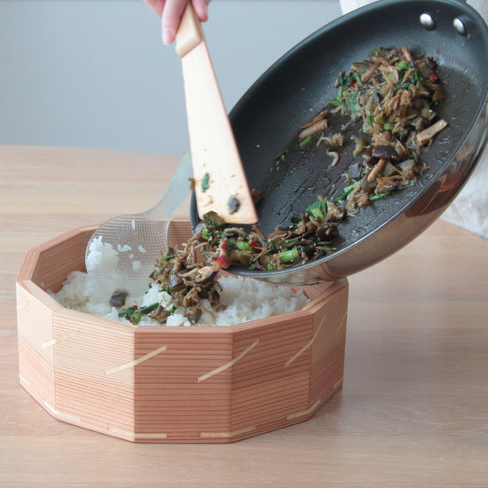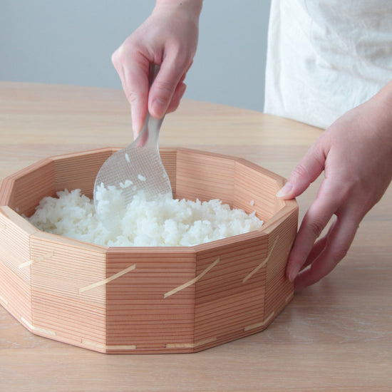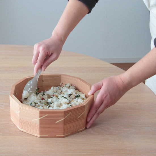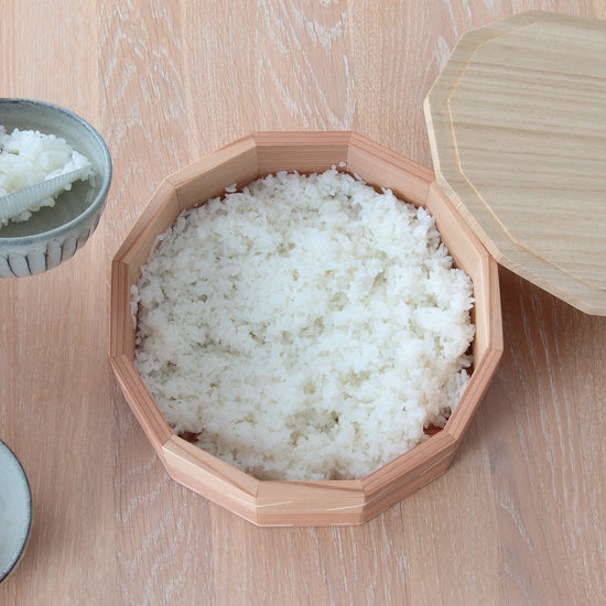 - 杉の木と桐の木を使ってひとつひとつ丁寧にお作りしているファミリーサイズの「おひつ」です。