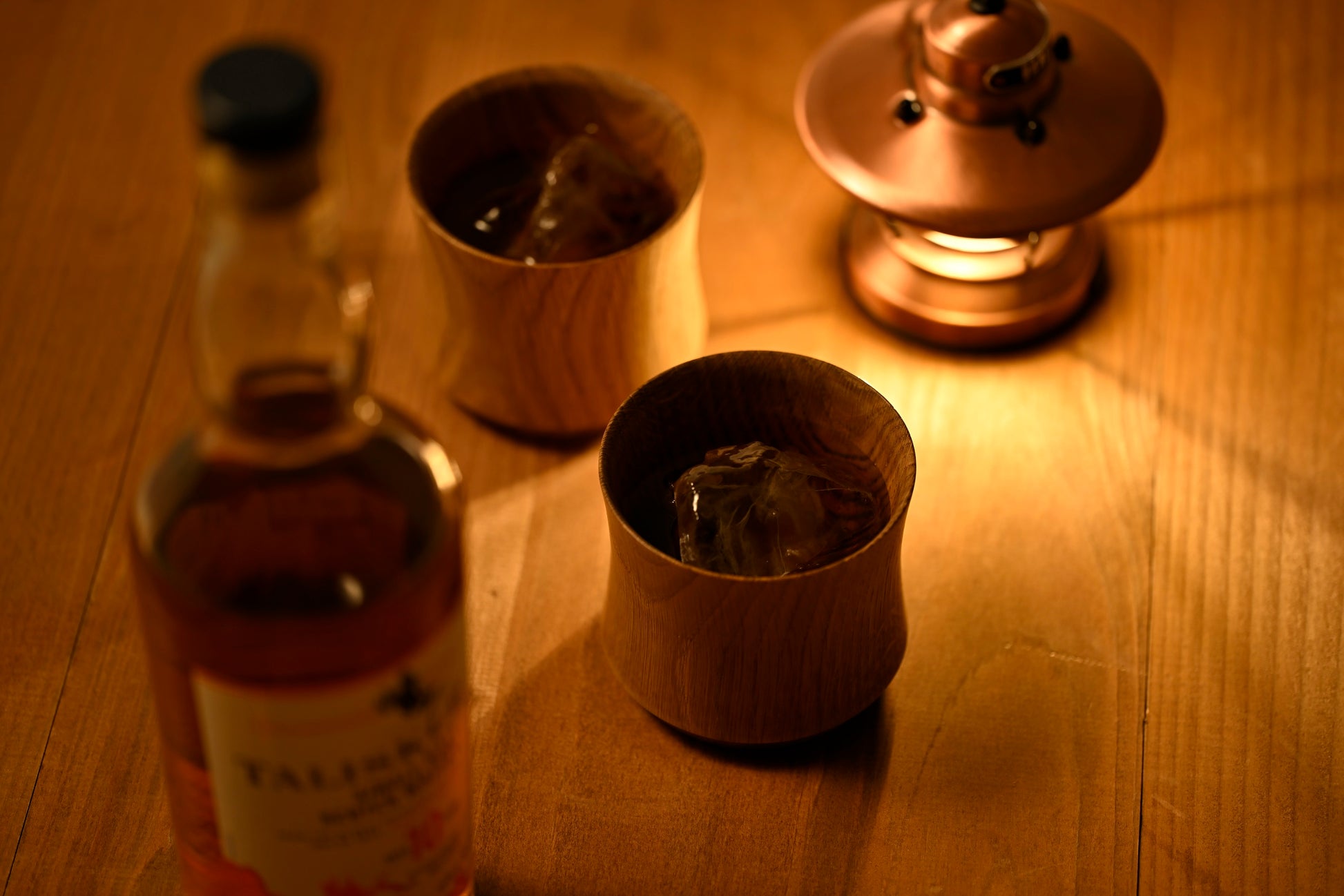 内底面の木を焦がし、ウイスキーの世界観を再現。