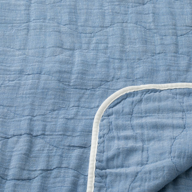 三河木綿の産地、愛知県蒲郡市にある機屋(はたや)の"細い糸を扱う技術とこだわり"を詰め込んだ、綿100%の国産ガーゼケット。通気性と吸水性に優れた生地は、使うほどに肌になじむ心地よさです。