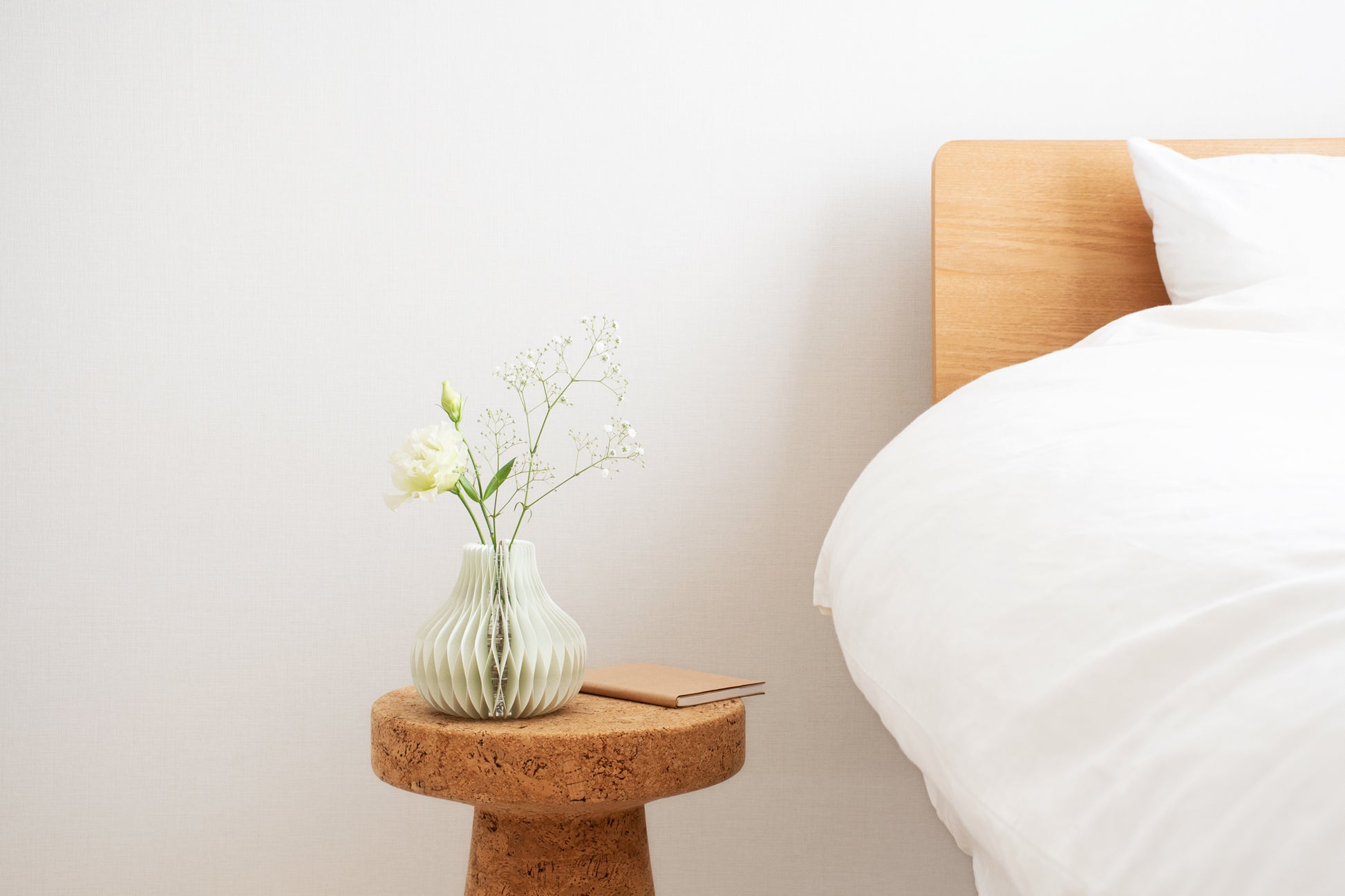 ペットボトルに花を生けただけでは、生活感にあふれてしまいますが、「Dress Pot」を着せるだけでハニカムのドレープによって華やかな印象に。ふっくらしたフォルムが安定感を高め、転倒しにくくなるという機能性も備えています。