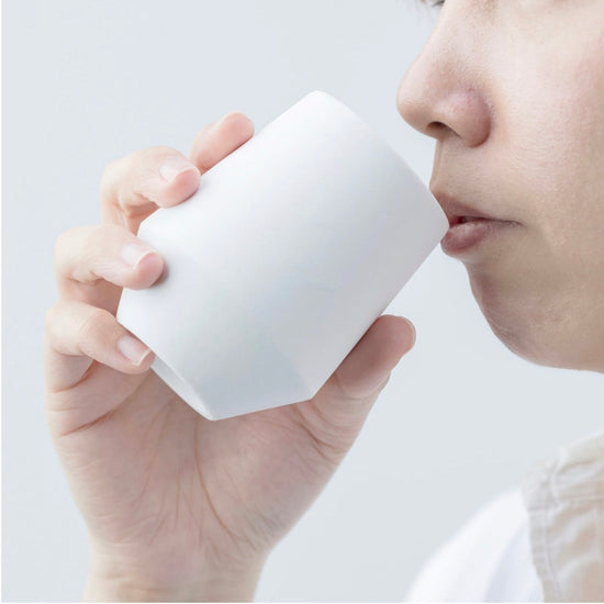 円錐形状を湯呑に採用することで、持ちやすさを与えています。