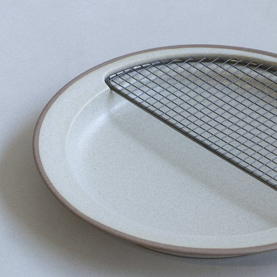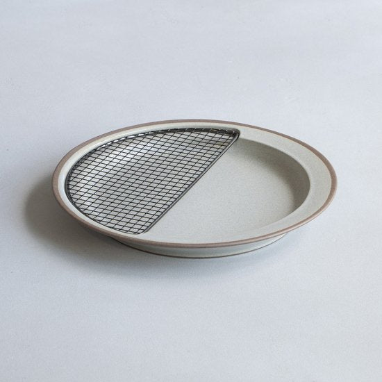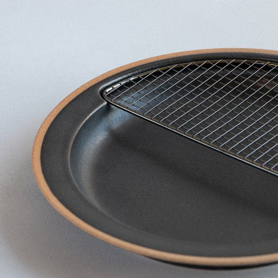 温かみある赤土がのぞくリムと釉薬の表情が豊かでモダンな美濃焼のプレートと網がひとつに。揚げ物はからっと揚げたての食感を最後まで愉しむことができ、蒸し物や水気のある食材にも。
