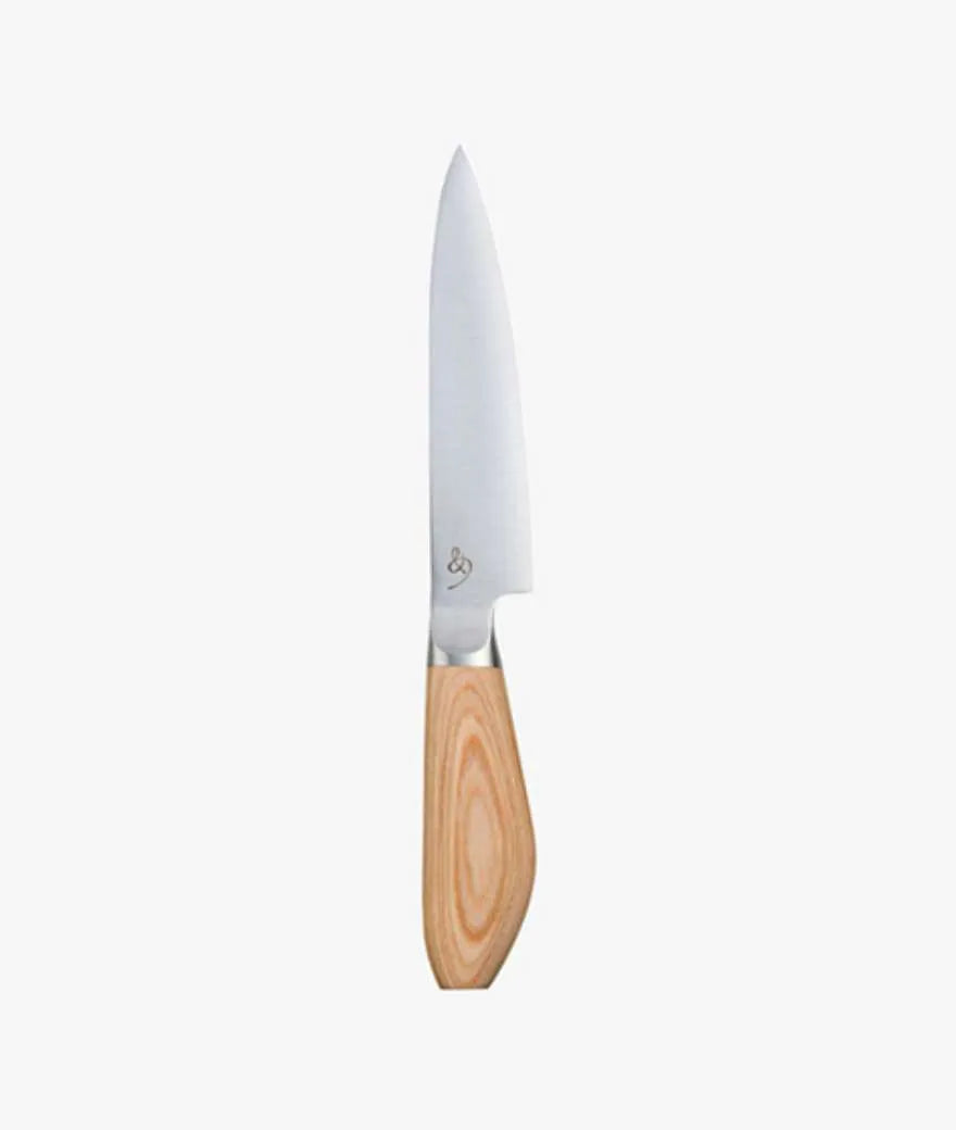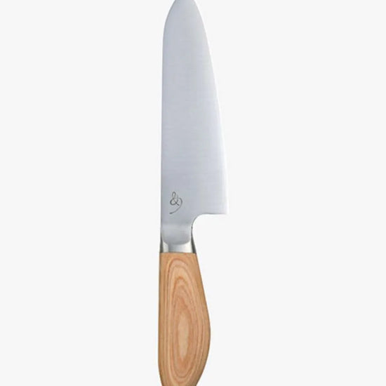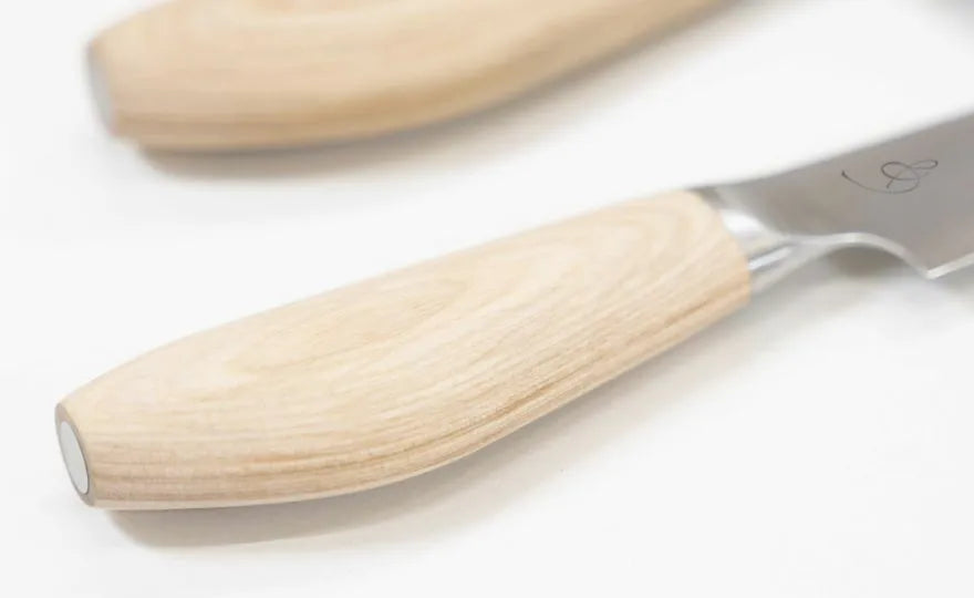 手触りがよく、手に添う柔らかなフォルム。天然木を使用しているので、使い続けるたびに手にしっとりとなじんでいきます。ほっこりとした見た目が、結婚祝いや母の日など、贈り物としても最適な包丁に仕上がりました。