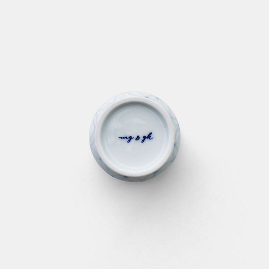 文様は有田焼で最もよく使われる呉須と呼ばれる青い顔料を使い、職人が手描きで仕上げています。通常より淡い色調で描くことで、「渓山窯」3代目・篠原祐美子氏の柔らかく優しい雰囲気を形にしました。またすべての商品が、有田焼の窯元で一つ一つ、手仕事によって絵付けされていることも特徴です。