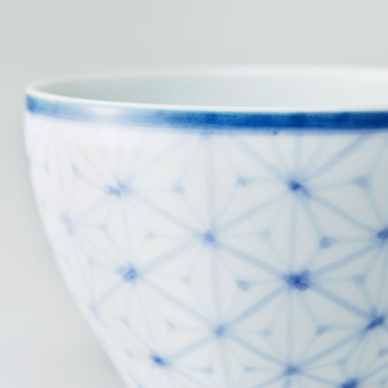 高い焼成温度で焼き締められた有田焼の薄く滑らかな白い磁肌に、「波」「七宝」「麻の葉」といった縁起の良い吉祥文様をベースとした絵付けが、寛ぎのひと時を優しく演出します。