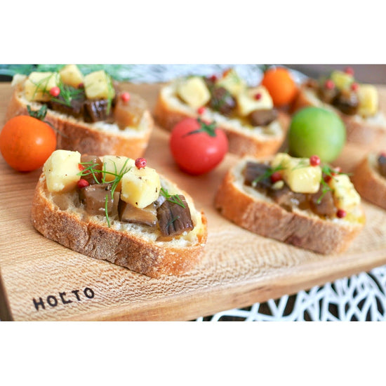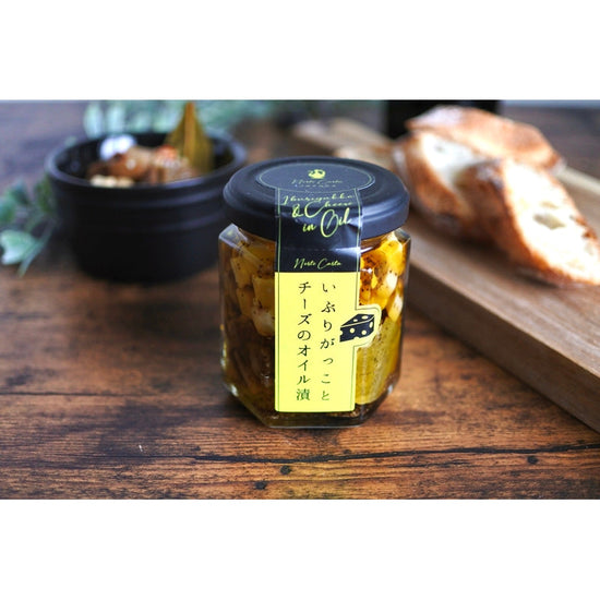 秋田が誇る「いぶりがっこ」を、定番の組み合わせであるチーズとともにオイル漬けにしました。