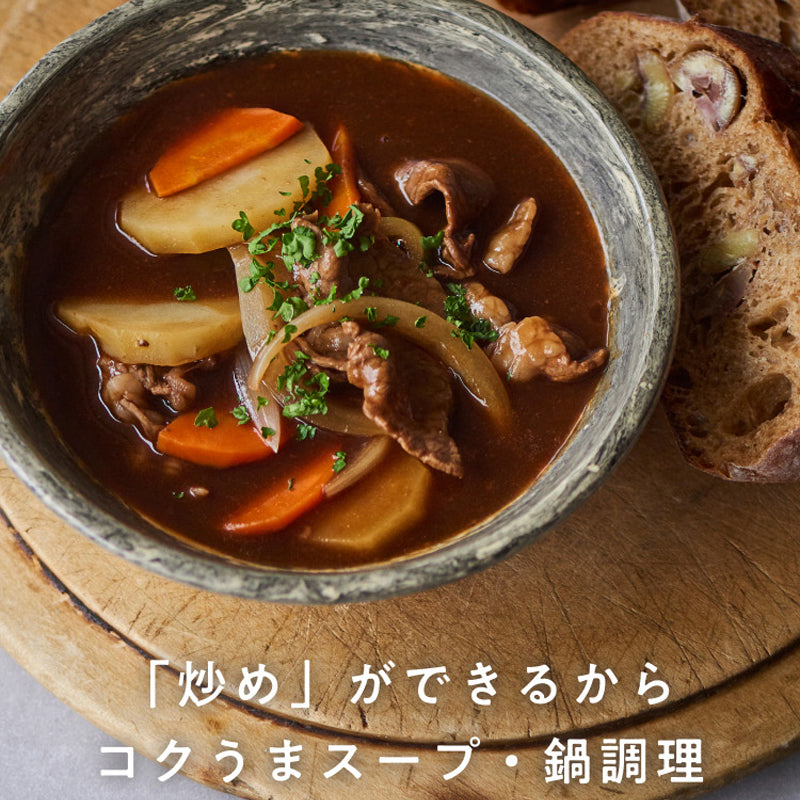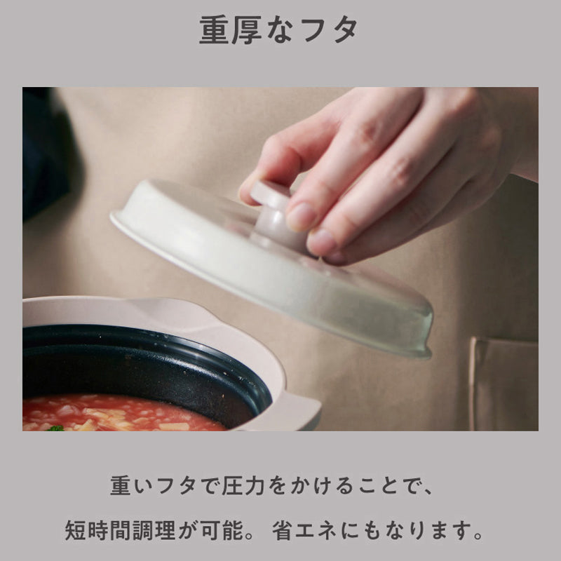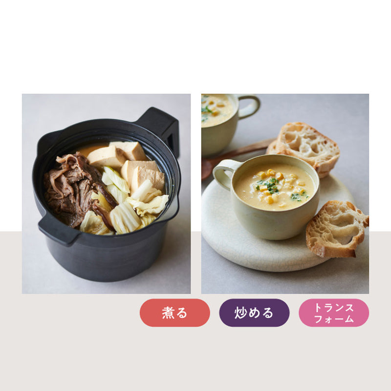2.ちょうど良い量で、香ばしさがプラスされた味わい深いスープができる:セラミックコーティングを施したフタにより、栄養やうま味を逃しにくくおいしい料理ができます。