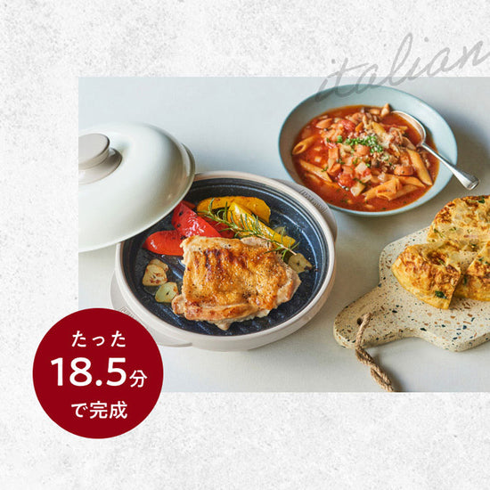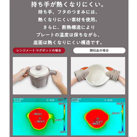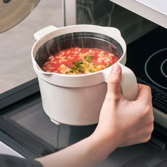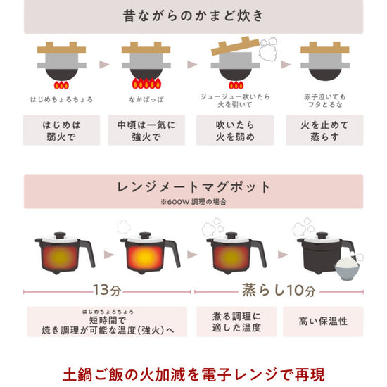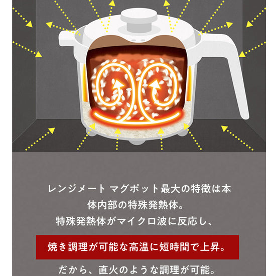 レンジメートマグポットは、食材を入れフタをして電子レンジで加熱するだけの簡単調理。