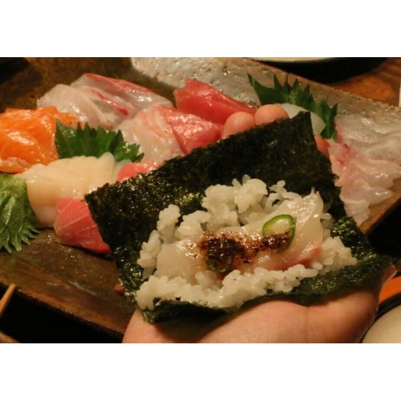 海苔、酢飯の上にネタを乗せて(白身魚が特にオススメ)、レモングラスオイルと自然塩をふりかけて、柑橘を絞りお好みで刻み青唐辛子またはワサビを。