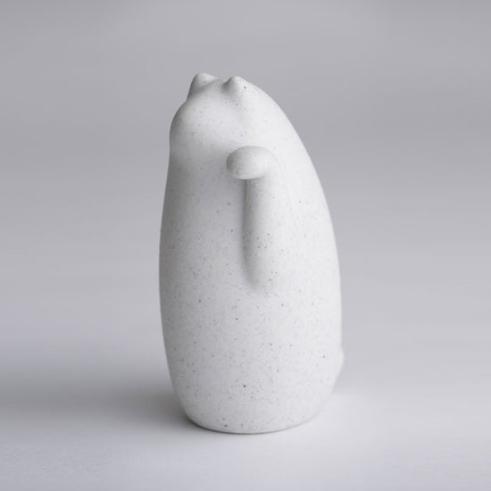 SETOMANEKI earth シリーズは、廃棄された陶磁器を粉砕し、瀬戸のきめ細かく粘り気のある陶土と混ぜ合わせて成形しています。あえて粒感が残るように粉砕したことにより、これまでにない質感や風合いを持つ招き猫に仕上がりました。表面のほのかな起伏は、どこかラフでざっくりとした印象で、SETOMANEKIのシンプルな形をより引き立てています。
