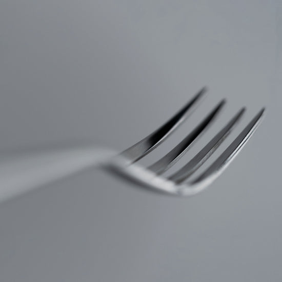 しっかり刺さるフォークは、お肉を刺して持ち上げたら抜けてしまった、サラダが食べにくい、といったことを解決するために、4本のフォークの刃を立体的にラウンドさせています。外側の2本と中央の2本を段違いにつけることで刺しても抜けにくい形状にするとともに、全体がスプーンのようにくぼんでいることでサラダの豆などちょっとしたものを掬うこともできます。