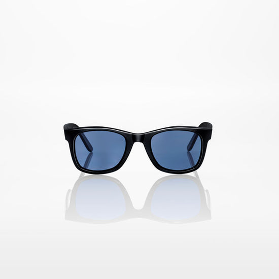 フレームには通常の眼鏡で使われるアセテート素材ではなく、TR90というエンジニアリングプラスチックを使用することで、従来はアセテートでしか作れなかった肉厚で重厚感のあるフレームを約28gという超軽量で実現しています。耐久性と靭性に優れ、多少折り曲げてもしっかりと元の形状に戻ります。ベースとなるTR90を丁寧に塗装し光沢のある質感に仕上げている為、外観と実際に手に取った際の重量に違和感を覚えるかもしれません。