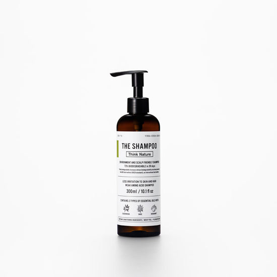 THE SHAMPOO[Think Nature]は、肌や髪への刺激が少ない弱酸性アミノ酸洗浄成分のシャンプーです。人の髪や皮膚を構成するタンパク質であるアミノ酸で構成されているため、肌のうるおい成分を残して汚れを落としてくれます。