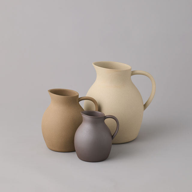 排泥鋳込みという昔ながらの技法で成形しています。手作業で丁寧に磨くことで、無釉薬でありながら、表面は滑らかな仕上がりです。触れると土そのものの質量と素材感を味わえます。