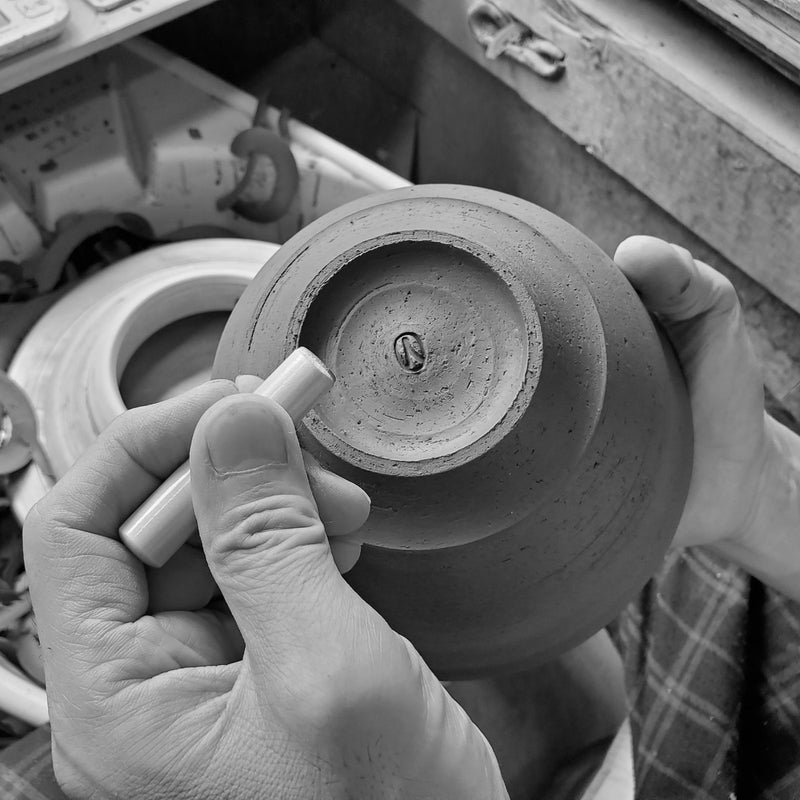 信楽焼ならではの職人の勘による表面を削るひと手間は、軽量化だけではなく、陶器本来の大小の石による凹凸が現れ、唯一無二の素朴で温かみのある風合いを醸し出しています。