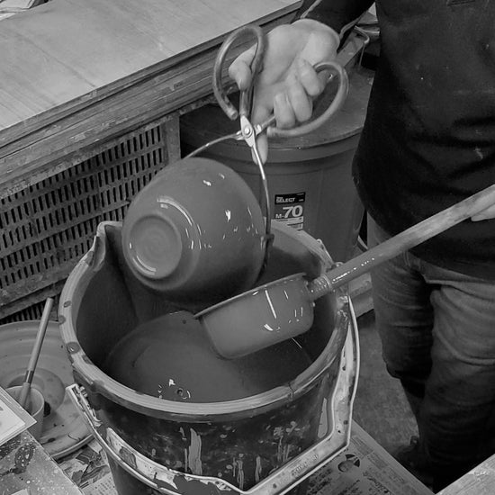 また、釉薬をかける際には特殊な鋏を用いて、ひとつひとつ細心の注意を払いながら、速さを変え丁寧に回しかけていきます。