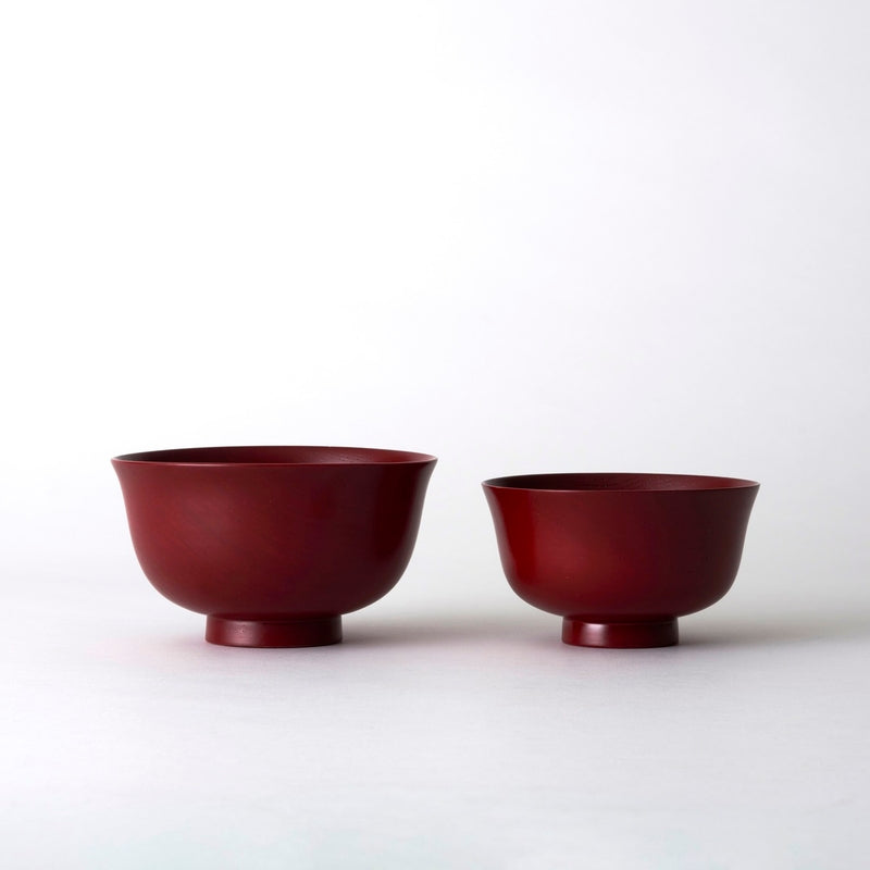 形状は、手に馴染みやすい滑らかな曲線美。汁物を飲みやすいよう外側に広がった羽反り形で程良い薄さの口元、さらに指の収まりの良い高台の形状はより持ちやすくなっています。