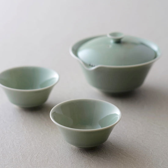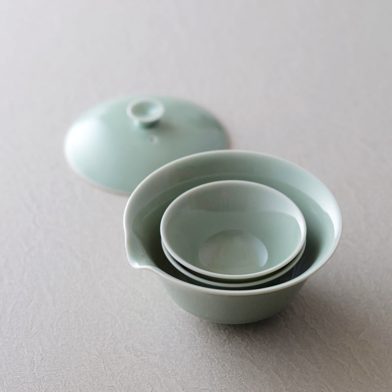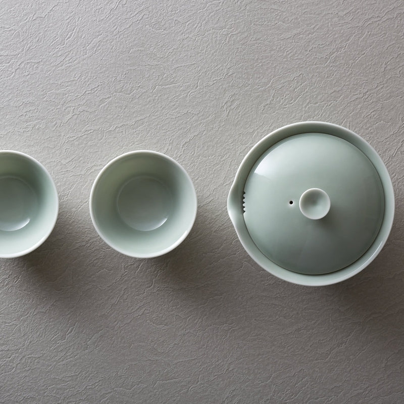 【WDH】宝瓶、湯呑み 2個セット 白磁 青磁 白 緑