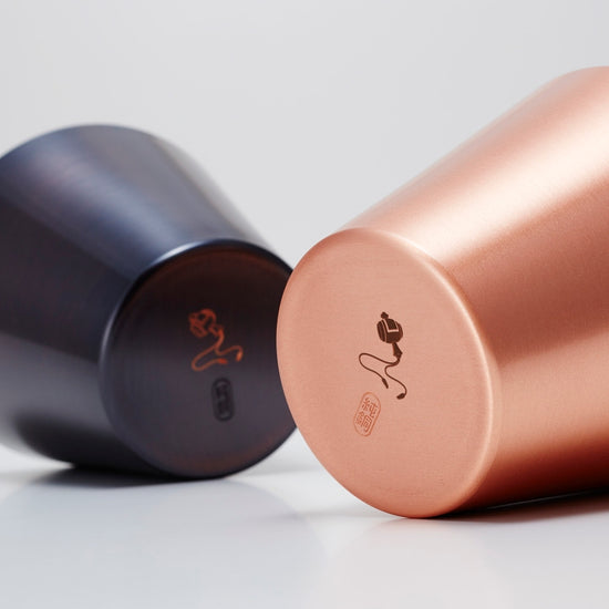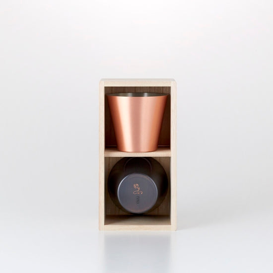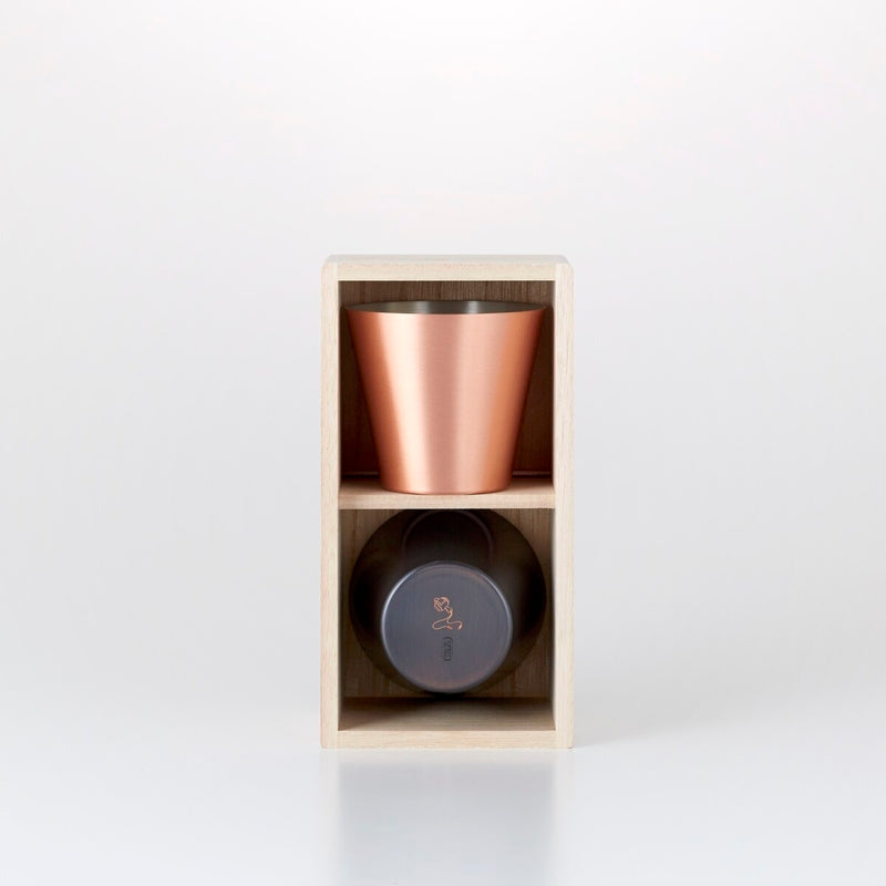 - 銅の質感を楽しむペアカップとコースターのギフトセット。