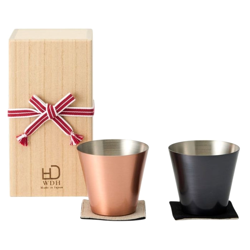 【WDH】純銅製カップ 2個セット コースター付 桐箱入り マット&ブラウン