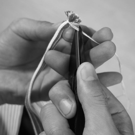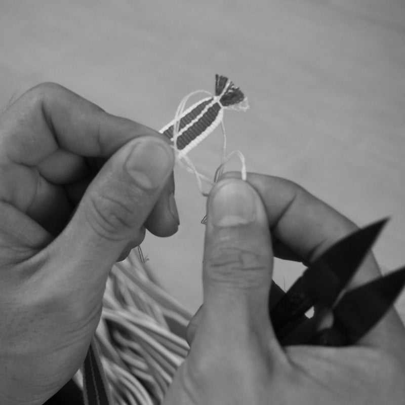 丈夫で伸びにくいとして重宝されてきた、太い木綿糸で縦糸と横糸で織り上げられた平たく狭い袋状の伝統工芸品として貴重な紐。