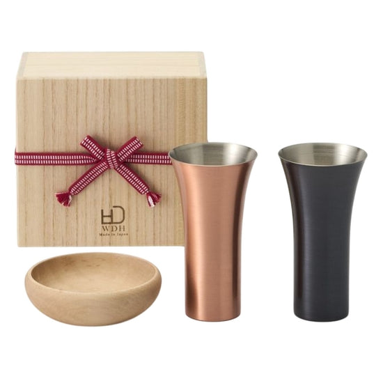 【WDH】純銅製タンブラー 2個セット ナッツボウル付 桐箱入り マット&ブラウン
