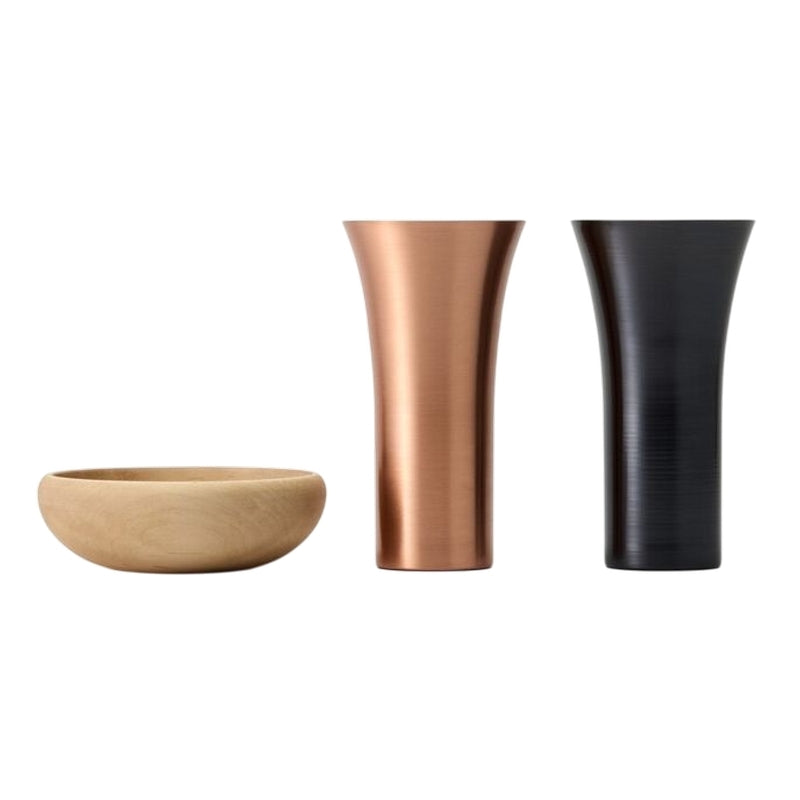 この純銅と天然木の組み合わせにお好きなおつまみを添えて五感で味わい、そして至福のひと時をお過ごしください。