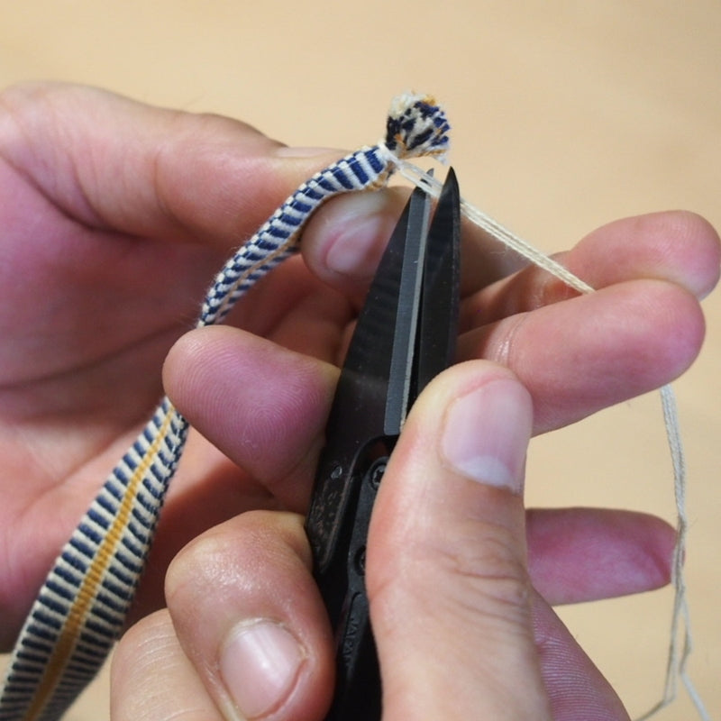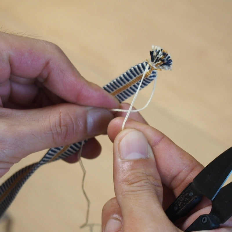 丈夫で伸びにくいとして重宝されてきた、太い木綿糸で縦糸と横糸で織り上げられた平たく狭い袋状の伝統工芸品として貴重な紐。