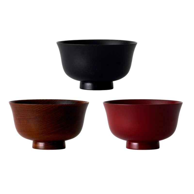 - 漆の艶が映える、口あたり柔らかな羽反り形の汁椀。